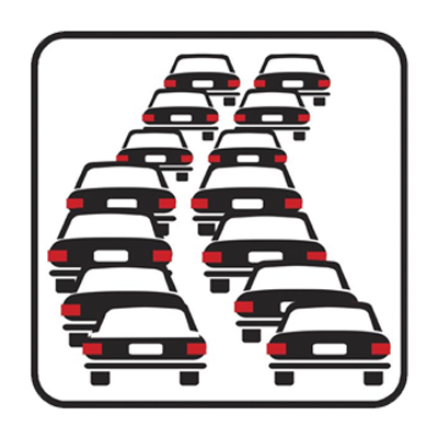 Indica la presenza di traffico molto intenso, prossimo ai limiti di saturazione della capacità dell’autostrada, in cui la circolazione può diventare intermittente anche in assenza di incidenti o cantieri. La velocità media di spostamento è inferiore ai 30 km/h.