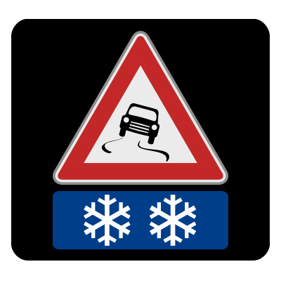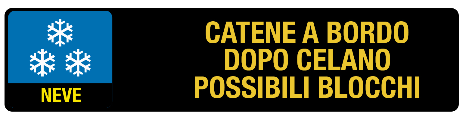 Indica l’obbligo di catene a bordo e la possibilità, a causa della neve, di nevicate dopo l’uscita di Celano.