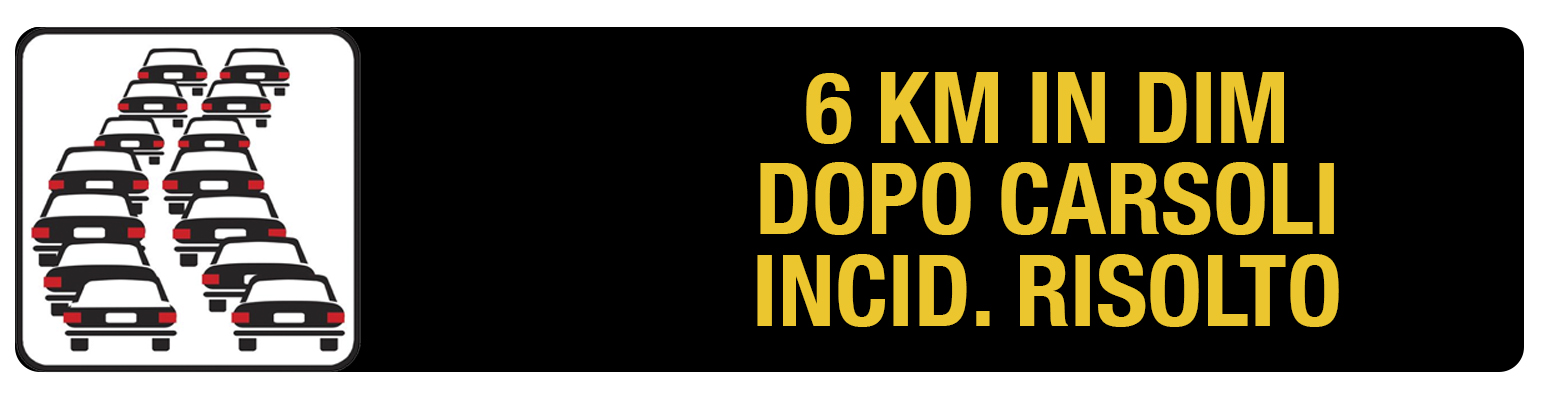 Indica la presenza di una coda di 6 km, tendente a diminuire, dopo l’uscita di Carsoli. L’incidente che ha causato la coda è stato risolto, liberando la carreggiata dai veicoli coinvolti.