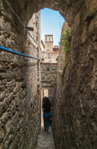 Visitare oggi Civitella del Tronto significa entrare in una delle più imponenti opere di ingegneria militare d’Europa. La Fortezza si sviluppa per oltre 500 metri di lunghezza, con una superficie di circa 25.000 metri quadrati, ed è considerata la più grande fortezza spagnola d’Italia. Arroccata a circa 600 metri sul livello del mare, domina la Val Vibrata e offre un colpo d’occhio che spazia dai Monti della Laga e dal Gran Sasso fino al Mare Adriatico. Il percorso di visita attraversa camminamenti coperti, piazze d’armi, cisterne, cammini di ronda e ospita il Museo delle Armi e delle Mappe Antiche. La Fortezza è visitabile tutto l’anno con orari stagionali (indicativamente dalle 10 alle 17 nei mesi invernali, fino alle 20 in estate, con ultimo ingresso 30 minuti prima della chiusura). Il pittoresco borgo di Civitella del Tronto, ai piedi della fortezza, è caratteristico e ricco di curiosità. Tra i suoi vicoli ci si può imbattere nella Ruetta, quello che è considerato il vicolo più stretto d’Italia. Un passaggio medievale che in alcuni punti non supera i 40 centimetri di larghezza.