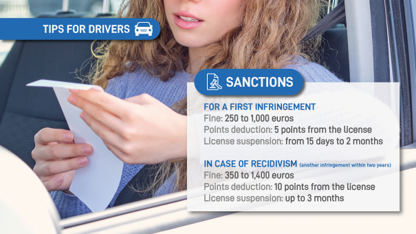- Fine: 350 to 1,400 euros.