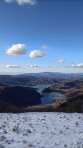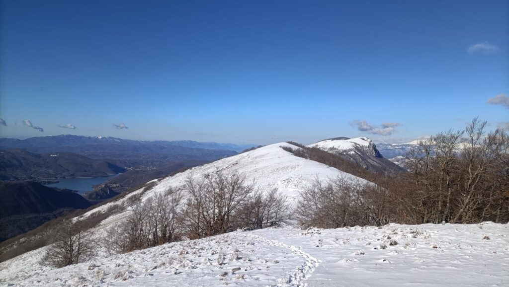 Leaving the capital, the A24 highway leads toward the nature of the Turano Valley. From the Carsoli exit it is easy to reach the “The Sky Above the Turano” hike, a ridge trek scheduled for Sunday, Jan. 18. The trail opens up to sweeping views of the lake, traversing quiet woods to the summit of Mount Cervia, where the sky seems to touch the mountains and water below.