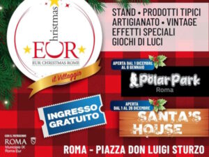 - EUR Christmas Village (22 novembre – 6 gennaio) regala pista di pattinaggio, street food e la Casa di Babbo Natale.