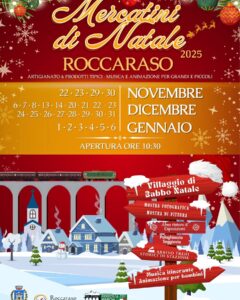 - Roccaraso e Campo di Giove offrono mercatini immersi nella neve, perfetti per chi ama l’atmosfera di montagna. Da non perdere il viaggio sul Treno Storico della Transiberiana d’Italia, che collega Sulmona ai borghi più suggestivi.