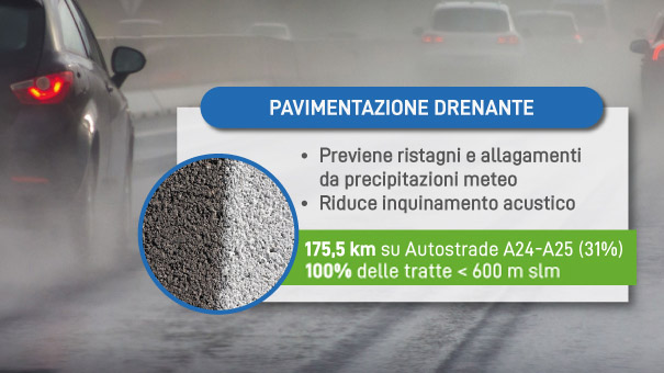 Con la pavimentazione drenante, unita ai consigli di guida prudente, ogni viaggio sulle autostrade A24 e A25 diventa non solo più sicuro, ma anche più sereno.