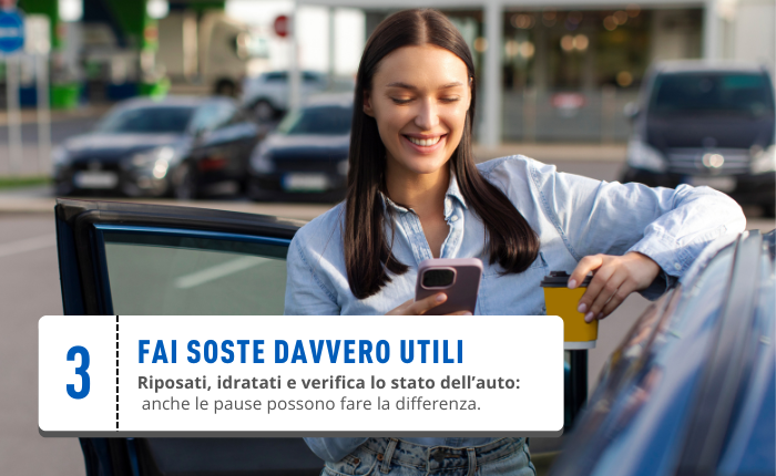 - fare soste regolari per riposare, idratarsi e recuperare attenzione;